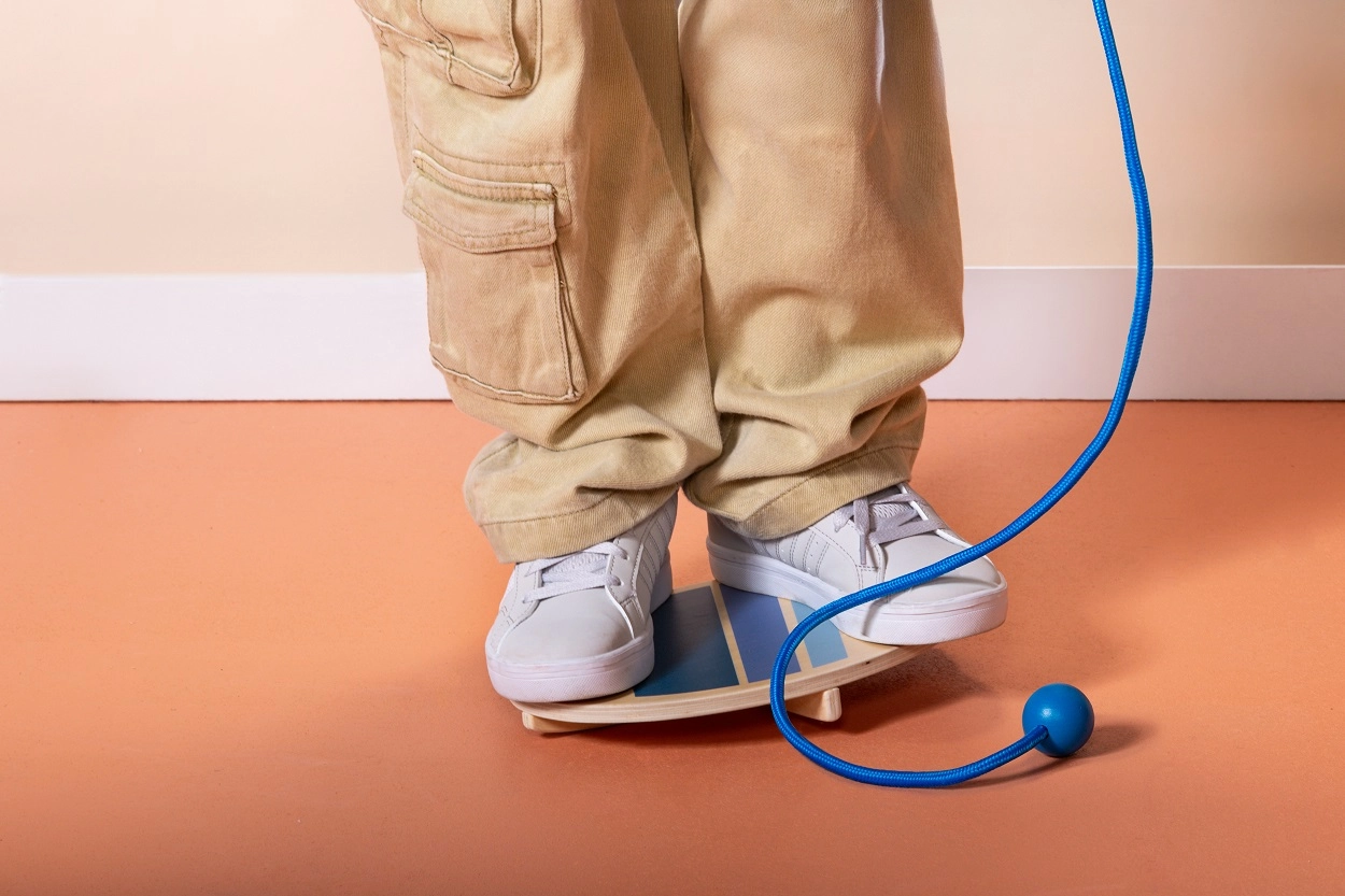 Dit eenvoudige en boeiende spel combineert balans en wedijver. Elke speler staat op zijn eigen balansbord en houdt een gezamenlijk touw vast. Het doel is om met gevoelvol trekken de tegenstander te laten wankelen en van het bord te stappen. Ideaal voor speelkamers, in de tuin en in de kleuterklas.