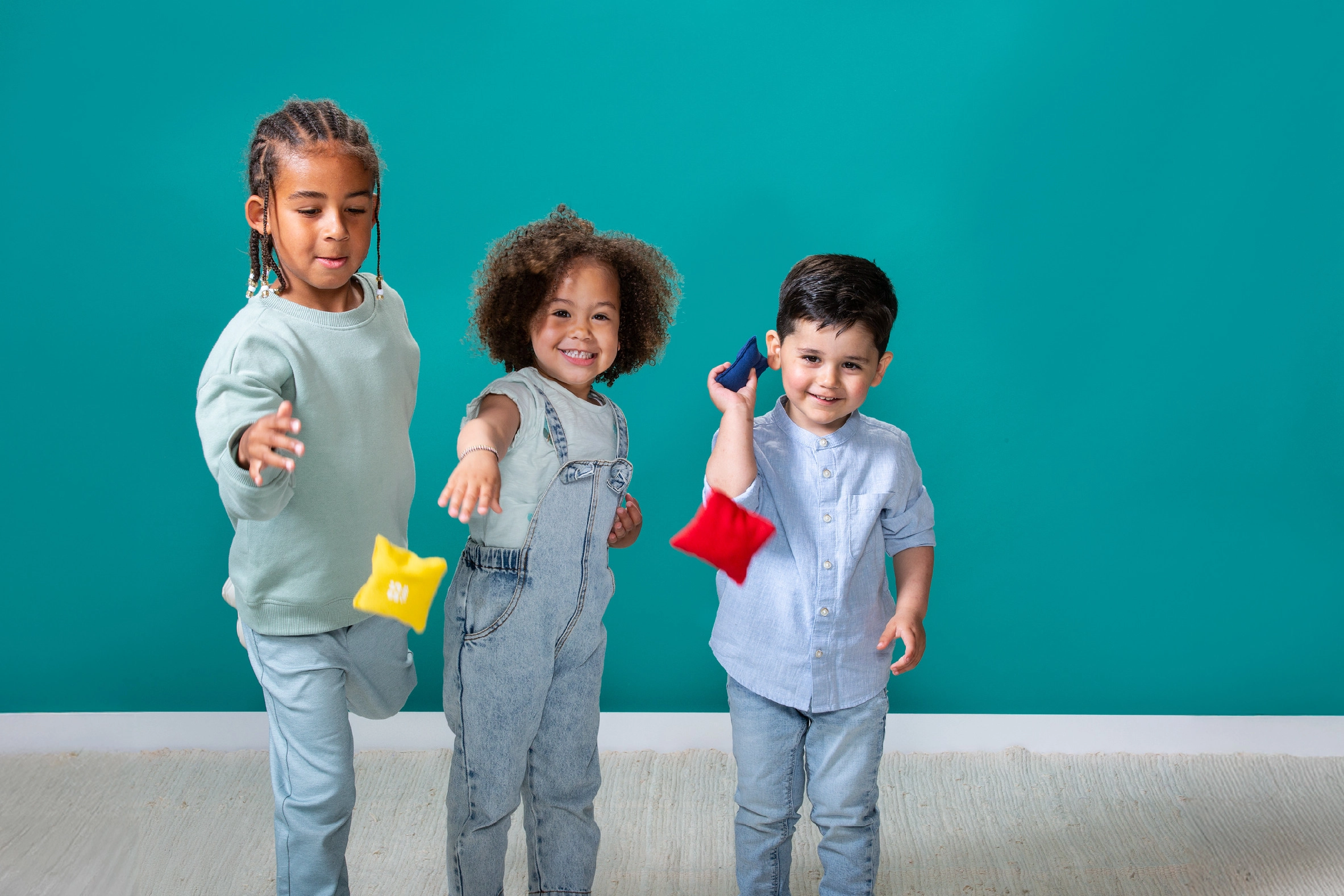 - Grove motoriek – gooien, vangen en gericht mikken.