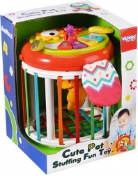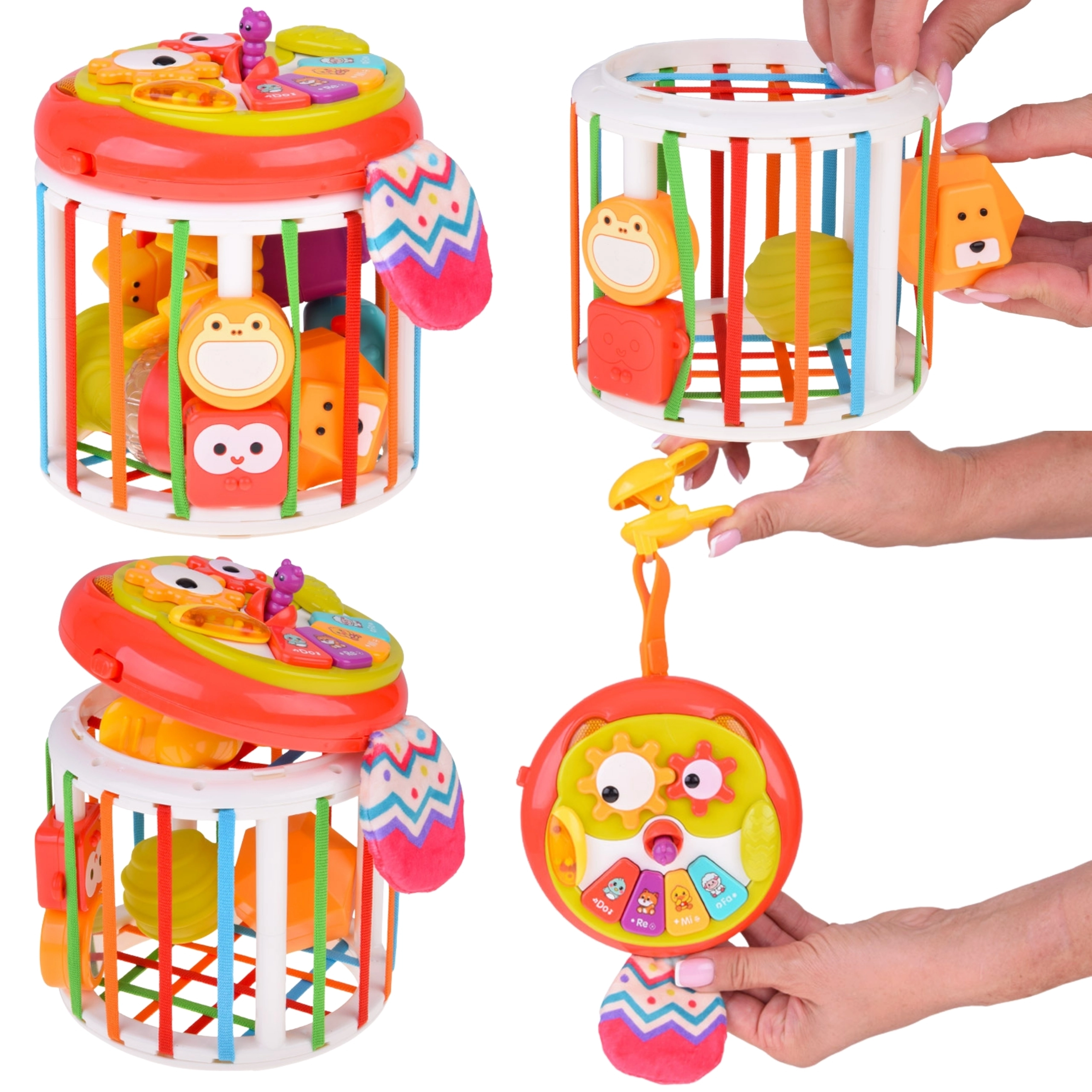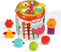 De interactieve sensorische kubus WOOPIE met muziekpaneel en schattige diertjes is een ideaal educatief speelgoed voor de allerkleinsten. Hij biedt een vormensorteerder, draaibare tandwielen, een spiegeltje en een zachte opening voor veilig ontdekken. Inclusief 7 verschillende blokjes met uiteenlopende vormen en structuren, die visuele en tactiele waarneming en de ontwikkeling van de fijne motoriek stimuleren. Een duurzame, veilige constructie garandeert een lange levensduur en comfortabel gebruik.