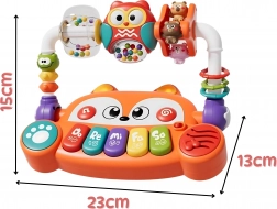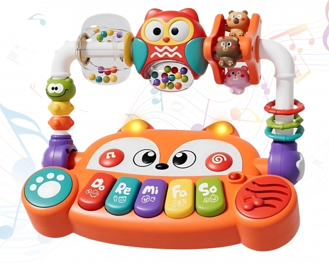 Zoek je een speelgoed dat je baby vermaakt en tegelijk de ontwikkeling vanaf de eerste maanden stimuleert? Het interactieve piano van het merk Woopie in de vorm van een schattige vos combineert muziek, licht, kleuren en beweging. Het biedt 5 muzikale toetsen (Do, Re, Mi, Fa, So), LED-lichteffecten gesynchroniseerd met de geluiden en draaielementen met rammelaars voor zintuigprikkeling. Dankzij de veilige constructie van niet-giftige materialen en gemakkelijk in te drukken knoppen is het ideaal voor kleine handjes en ondersteunt het de zintuiglijke, muzikale en cognitieve ontwikkeling.