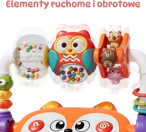 - draaibare uil met rammelaars, dierfiguurtjes, gekleurde ringetjes/balletjes