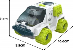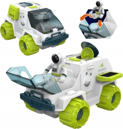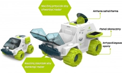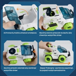 Deze futuristische ruimterover valt op met een witte carrosserie met contrasterende groene accenten en realistische details geïnspireerd op verkenningsvoertuigen. De transparante, te openen cockpit laat je de astronaut comfortabel achter het stuur plaatsen, terwijl de interactieve radar automatisch uitschuift wanneer je op de knop op het dak drukt en weer verdwijnt bij het indrukken van de voorbumper.