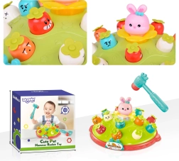 De veilige afwerking met gladde oppervlakken en zachte hamertjes beschermt kleine vingertjes, terwijl het kleurrijke ontwerp met konijntjes en plantjes de fantasie en creativiteit stimuleert. Het spel werkt op batterijen (niet inbegrepen), zodat je het gemakkelijk overal mee naartoe kunt nemen.