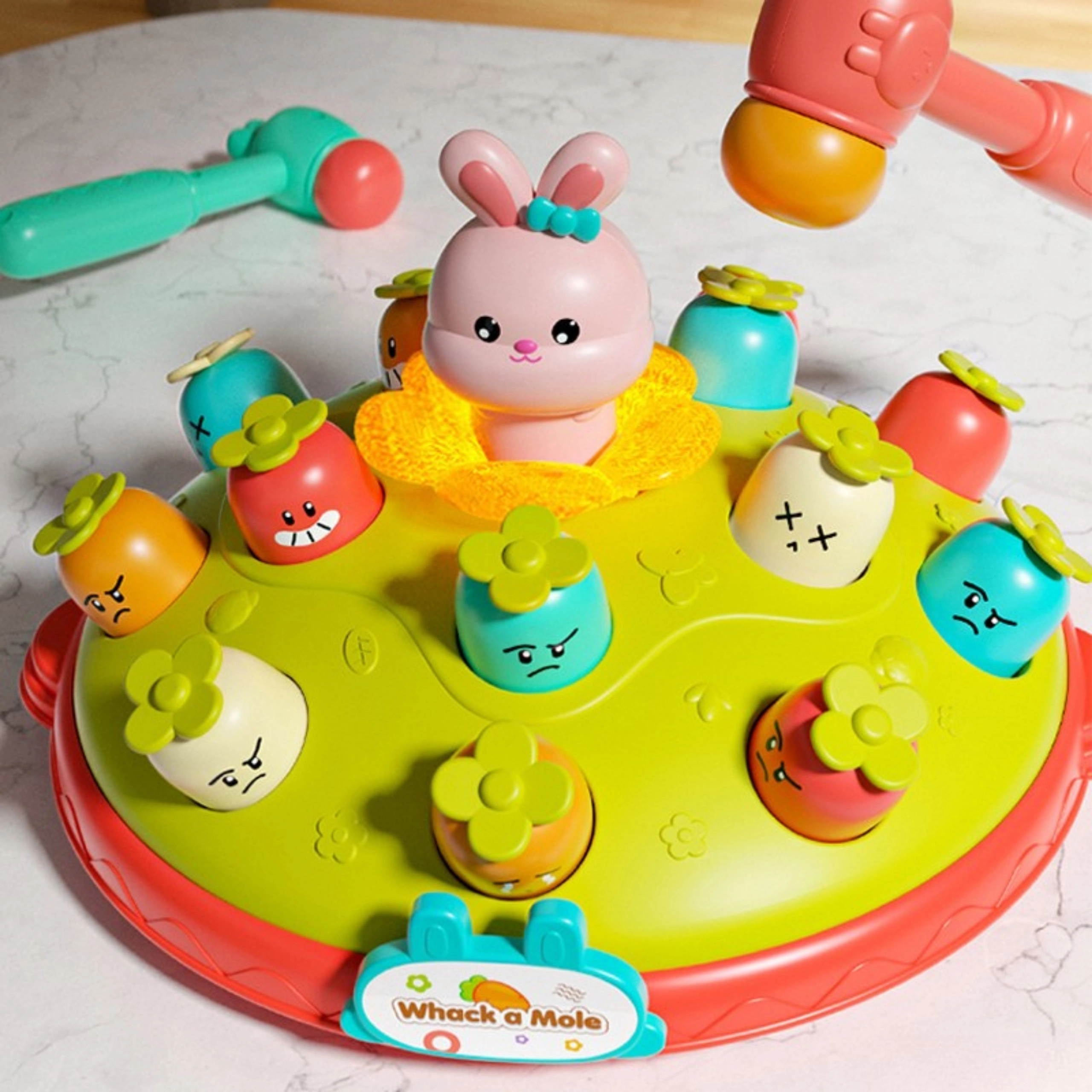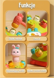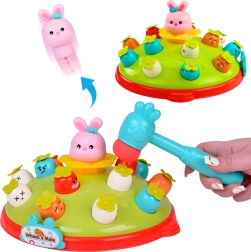 Een leuk en veilig interactief spel van het merk WOOPIE biedt kinderen vanaf 18 maanden uren plezier en leren. Kinderen slaan met een zacht hamertje op de “molletjes” en verbeteren zo hun reflexen, oog-handcoördinatie en concentratie. Gekleurde lichtjes, vrolijke melodieën en een vriendelijk design met worteltjes en konijntjes verhogen de motivatie om te spelen. Het spel is gemaakt van hoogwaardige materialen, heeft gladde randen en een zacht hamertje voor maximale veiligheid van kleine handjes.