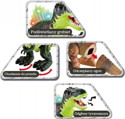 Ontdek de wereld van dinosaurussen met de interactieve T-Rex, die veel plezier en vaardigheidsontwikkeling brengt. Dankzij realistische bewegingen, lichteffecten en de brul van de tyrannosaurus trekt hij kinderen het spel in en stimuleert hij hun verbeelding. De speelgoed is gemaakt van hoogwaardige materialen en is geschikt voor kinderen vanaf 3 jaar.