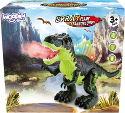 Spectaculaire interactieve dinosaurus Tyrannosaurus Rex van het merk Woopie biedt kinderen een uniek prehistorisch avontuur. Hij kan vooruit lopen, heeft een bewegende kaak, een kleurrijk verlichte rug en produceert authentieke brulg geluiden. Bovendien verspreidt hij indrukwekkende mist die een vurige vlam nabootst.