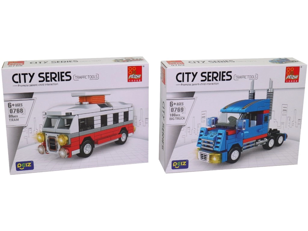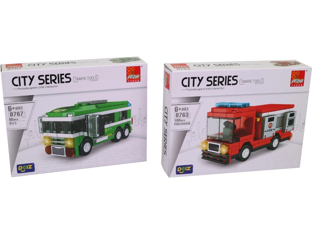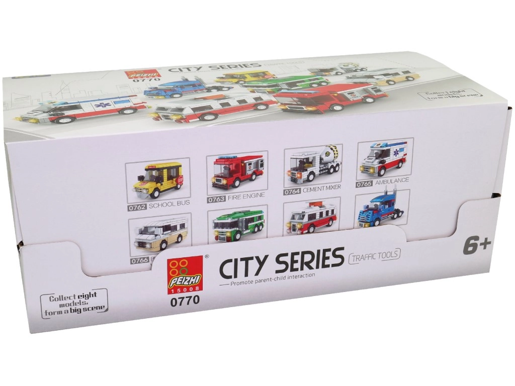 Deze bouwset uit de serie stadsvoertuigen biedt kinderen uren creatieve pret. In de praktische displaybox zitten 8 afzonderlijke minisetjes die, eenmaal gebouwd, favoriete vervoermiddelen vormen zoals een bus, brandweerwagen, ambulance of vrachtwagen. De onderdelen zijn binnen de set compatibel en ontworpen voor eenvoudig bouwen.