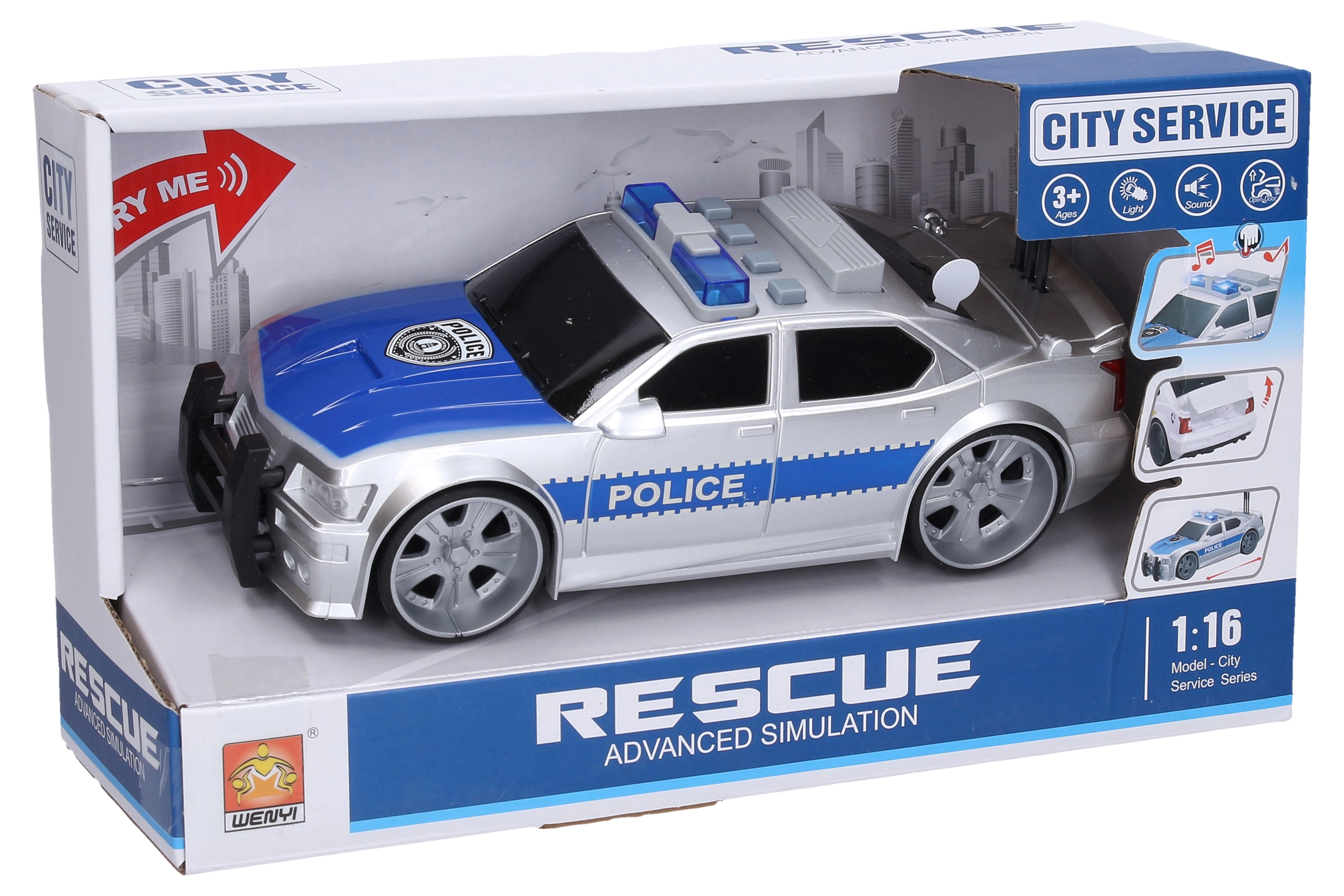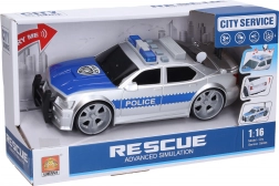 Een realistische politiewagen met vliegwielaandrijving die zowel kleine als grote actiefans zal verrassen. Voorzien van licht- en geluidseffecten, een openende motorkap met knop en eenvoudige bediening dankzij het vliegwiel. Batterijen zijn inbegrepen, dus het speelplezier kan meteen beginnen.
