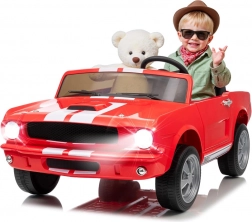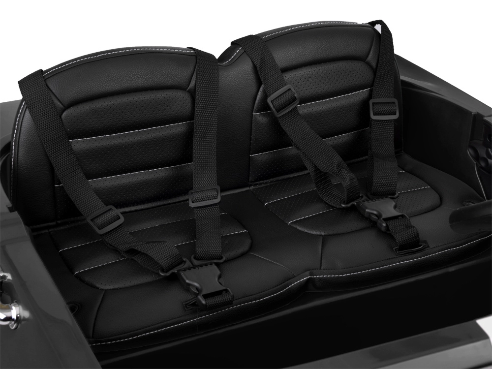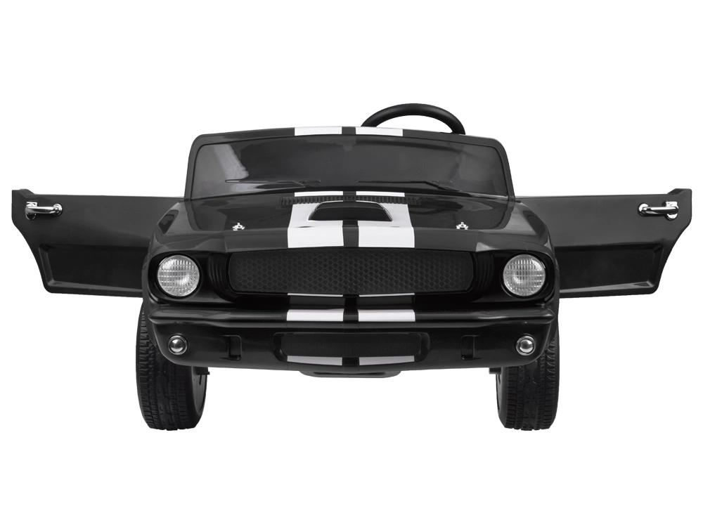De elektrische kinderauto in de stijl van de klassieke muscle car SHELBY GT350 overtuigt met design en uitrusting. De tweezitsbank met eco‑leren bekleding en afzonderlijke 3‑puntsgordels zorgt voor comfort en veiligheid, terwijl het naar links verplaatste stuur realistischer rijden biedt. Soepele start en een elektrische rem bij het loslaten van het pedaal verhogen het comfort; verlichting voor/achter versterkt de sfeer van een echte auto.