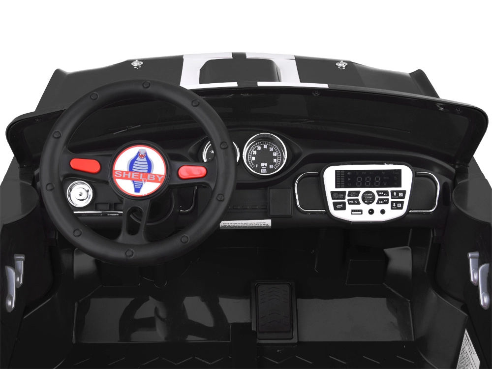 Stijlvolle kinderrit in klassieke geest! Deze elektrische kinderauto, geïnspireerd op de iconische SHELBY GT uit 1965, biedt twee zitplaatsen, soepele wegrijfunctie, EVA-schuimbanden, openende deuren en afstandsbediening voor ouders. De sportieve look wordt aangevuld met witte race‑strepen, realistische interieurdetails en een multimediasysteem met Bluetooth/USB.