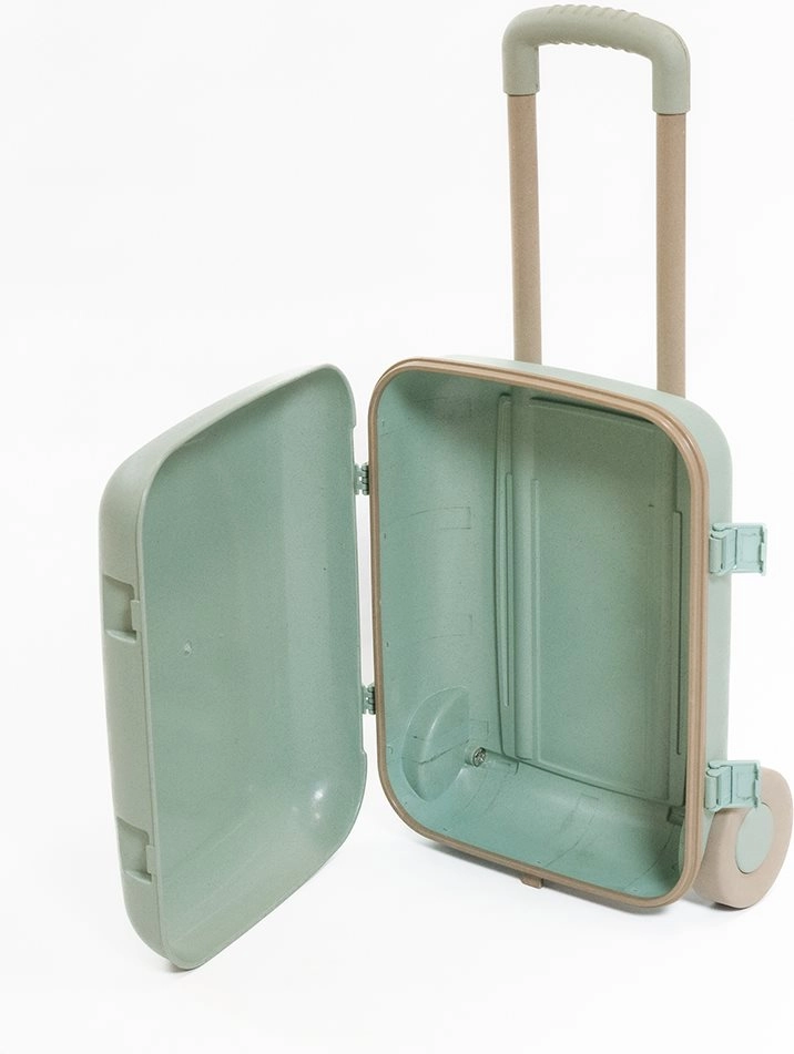 Lichte en stevige kinderkoffer op wieltjes van ecomateriaal op basis van tarwestro voor zorgeloos reizen. Voorzien van een verstelbaar telescopisch handvat, soepel rollende wielen voor comfortabel trekken en voldoende inhoud voor favoriete speeltjes en kleine spulletjes. De ideale reisgenoot voor kleine avonturiers.