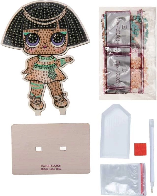Diamond painting is een geweldige manier om je hoofd leeg te maken en tegelijk een originele decoratie te maken met het thema LOL Surprise: Farao. De werkwijze is intuïtief – neem de afzonderlijke steentjes met was op de pen en breng ze over naar het gemarkeerde vlak. Het resultaat is een effectvolle, glinsterende afbeelding die je dankzij de standaard gemakkelijk kunt tentoonstellen.