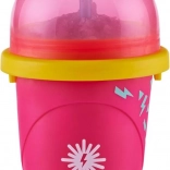Eenvoudige werkwijze zonder lange voorbereiding: plaats de beker 8–10 uur in de vriezer, schenk een gekoeld drankje in, draai het deksel erop en knijp. In een oogwenk heb je een verfrissende slush.