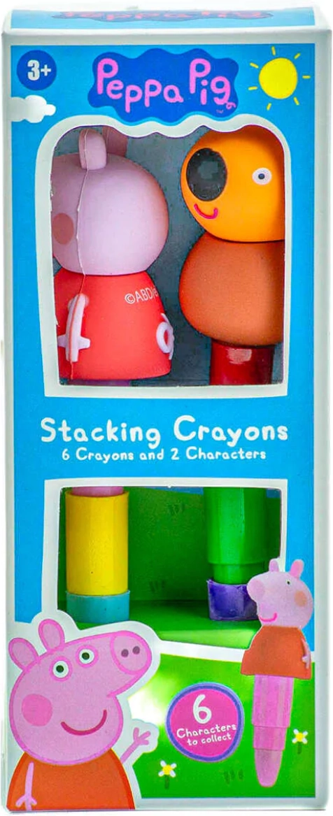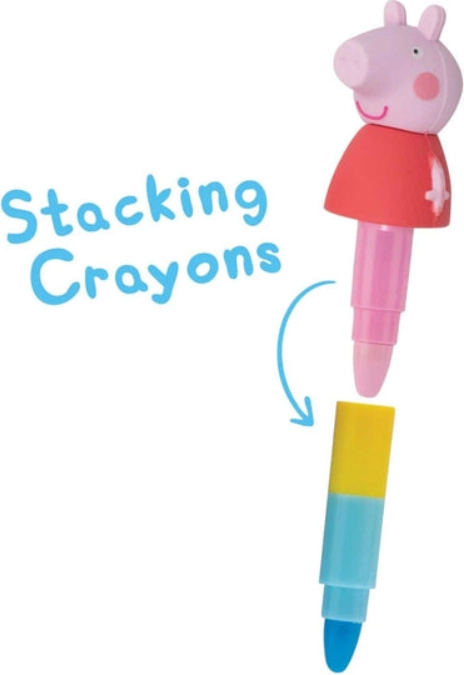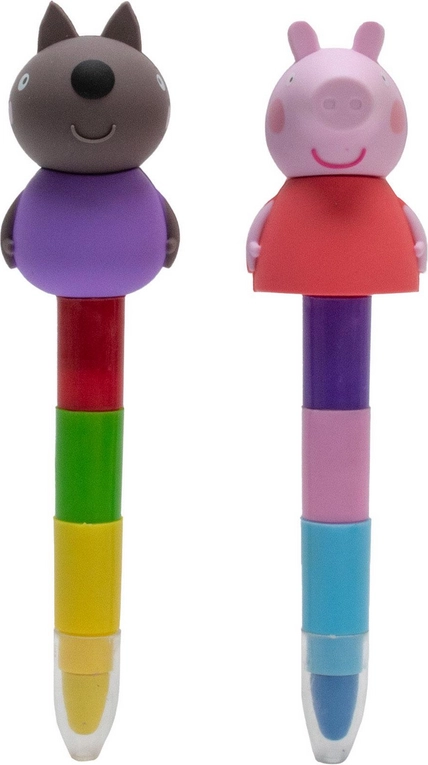 Stimuleer de creativiteit van kinderen met vrolijke stapelkrijtjes met motieven van PEPPA PIG. Elk krijtje verbergt drie kleuren in één, zodat kinderen eenvoudig kunnen wisselen van tint tijdens het tekenen en inkleuren. Dankzij het dikkere lichaam liggen de krijtjes goed in de hand en breken ze minder snel.