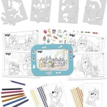 Ontdek de leuke creatieve set Bluey 3-in-1, die kinderen drie activiteiten in één biedt: platen inkleuren, 3D-figuurtjes maken en tekenen met sjablonen. Stimuleert fijne motoriek, concentratie en fantasierijk spel.