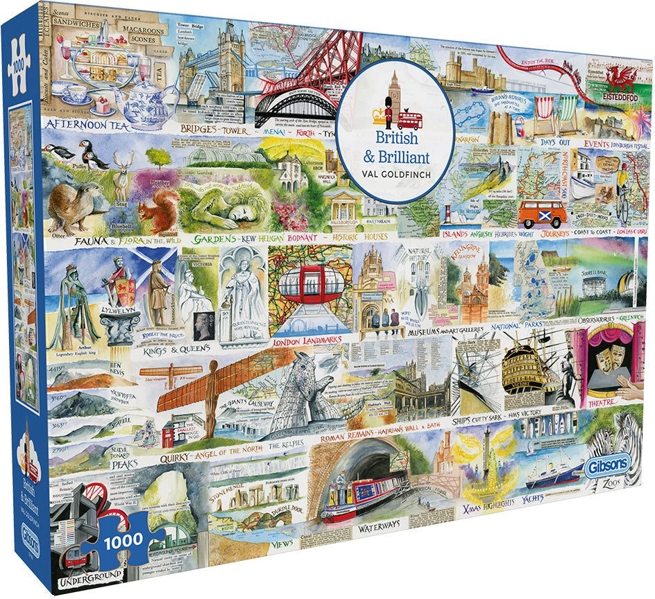Ontdek het plezier van puzzelen met de GIBSONS-puzzel Brits en briljant. Dankzij de hoogwaardige afwerking, duurzame stukjes en nauwkeurige stans zorgt het leggen voor een vloeiende en bevredigende ervaring. De voltooide puzzel van circa 68 × 49 cm komt prachtig tot zijn recht als decoratie en is een geweldige uitdaging voor het hele gezin.