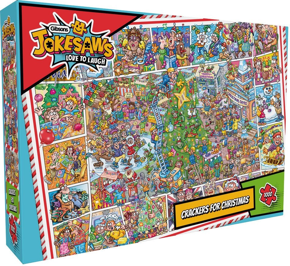 Stap in de wereld van feestelijk vermaak met de puzzel GIBSONS Jokesaws: Crackers for Christmas. Duizend nauwkeurig uitgesneden stukjes vormen een gedetailleerde illustratie vol kerstgrappen, die zowel verzamelaars als gelegenheidsleggers zal bekoren. Dankzij het comfortabele formaat na het leggen van 68 × 49 cm past hij perfect op de meeste tafels en legmatten.