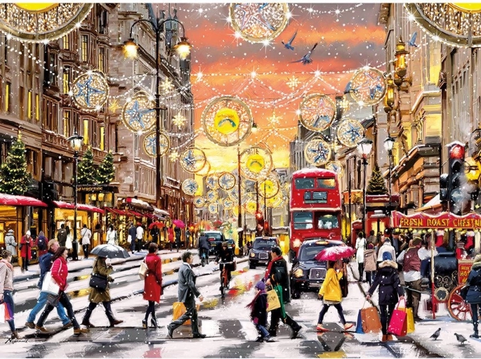 Ontdek de magie van Kerst in elk stukje. De Gibsons puzzel “Feestdrukte” brengt een rijk geïllustreerde winterse sfeer die zowel beginners als ervaren puzzelaars zal bekoren. Dankzij de nauwkeurige stans en de hoogwaardige druk verloopt het leggen soepel en is het visueel indrukwekkend.