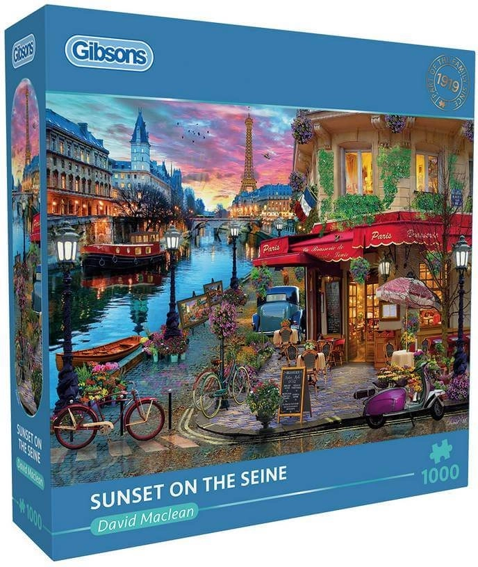 Ontdek de charme van een Parijse avond met het zicht op de Seine bij zonsondergang. GIBSONS-puzzels staan bekend om hun hoogwaardige karton, nauwkeurige stansvormen en diepe kleuren die elk detail benadrukken. Het leggen is soepel, prettig en geschikt voor zowel beginners als ervaren puzzelliefhebbers.