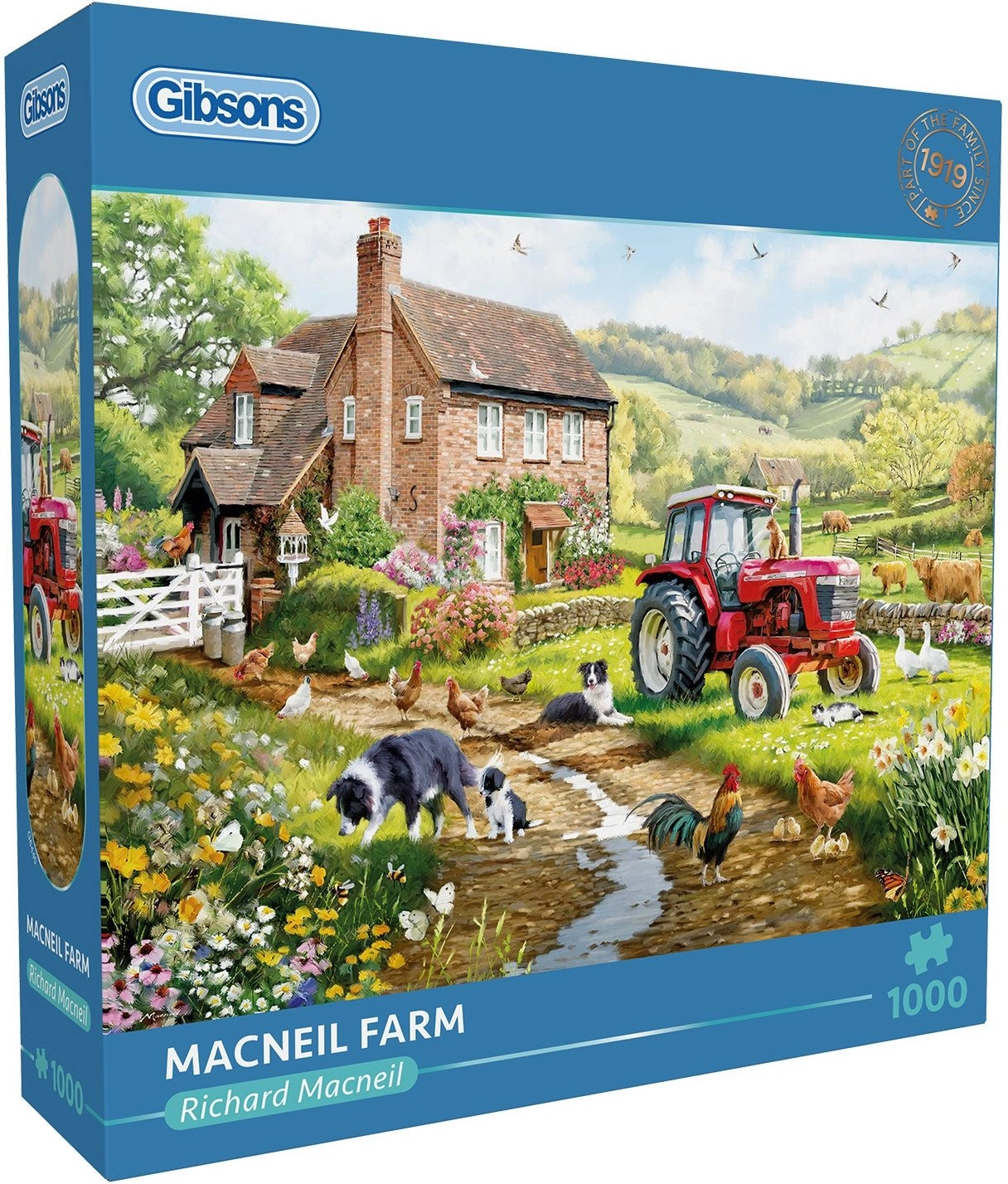 Geniet van ontspanning en plezier met de hoogwaardige puzzel van GIBSONS. De illustratie “Macneil’s boerderij” biedt 1000 stukjes vol details en kleuren, ideaal voor liefhebbers van landelijke motieven. Na het leggen meet de puzzel ca. 68 × 49 cm, perfect om in te lijsten of tentoon te stellen.