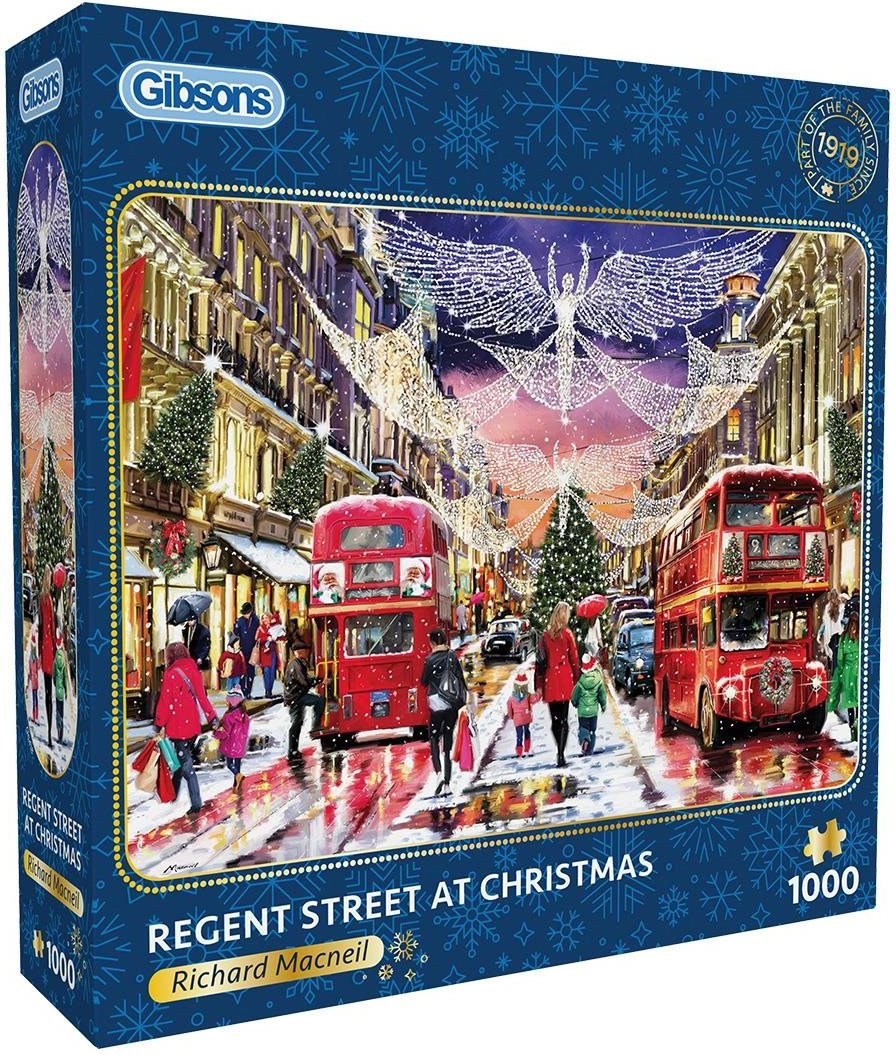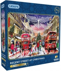 Ontdek een gedetailleerd winters tafereel van de iconische Regent Street met kerstversiering. De puzzel van GIBSONS staat bekend om de hoge afwerkingskwaliteit, nauwkeurige stansvormen en diepe kleuren, waardoor het leggen van begin tot eind een plezier is.