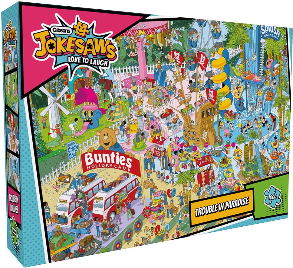 Zoek je een puzzel die je aan het lachen maakt en tegelijk je legvaardigheden op de proef stelt? Jokesaws: Trouble in Paradise brengt een humoristische scène vol kleine grapjes en details die je met plezier zult ontdekken. Met 1000 stukjes is het een ideale uitdaging voor gevorderde leggers én voor een gezellige familiemiddag.