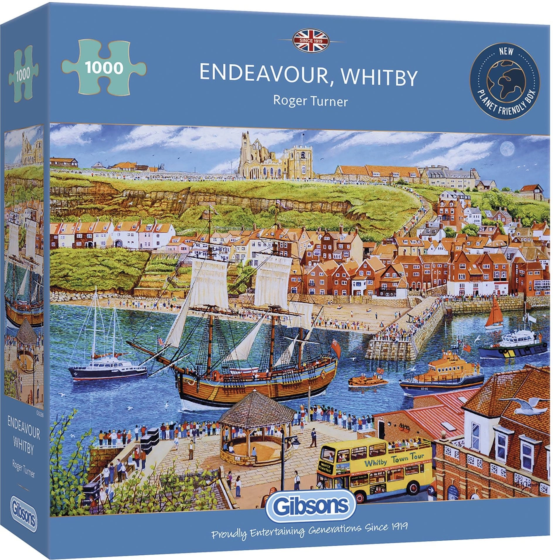 Duik in de gedetailleerde illustratie van de historische haven van Whitby en het legendarische schip Endeavour. Puzzels van GIBSONS staan bekend om hun precieze stanswerk, aangenaam stevig karton en matte afwerking die schittering vermindert, zodat leggen zo comfortabel mogelijk is.