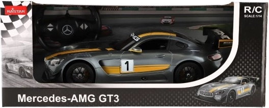 Ontdek het zorgvuldig vervaardigde RC-model MERCEDES-AMG GT3 in grijs met gele strepen en een opvallende achtervleugel. De gedetailleerde carrosserie valt op door sportieve lijnen en authentieke race-elementen die elke liefhebber van snelle auto's zullen bekoren.