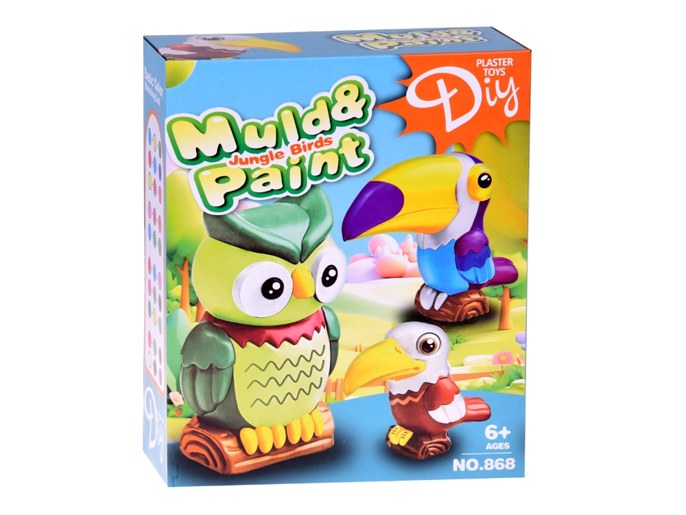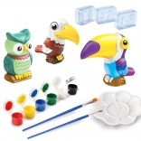 Ontdek een leuke creatieve set voor kinderen waarmee je eenvoudig je eigen 3D-figuurtjes van exotische vogels maakt en decoreert. De doos bevat mallen, gips, verf, penselen en een palet – voeg alleen water toe en begin met creëren. Deze activiteit ontwikkelt de fijne motoriek, creativiteit en geduld, en het resultaat zijn kleurige uilen, een toekan en andere tropische vogels als prachtige kamerdecoratie.