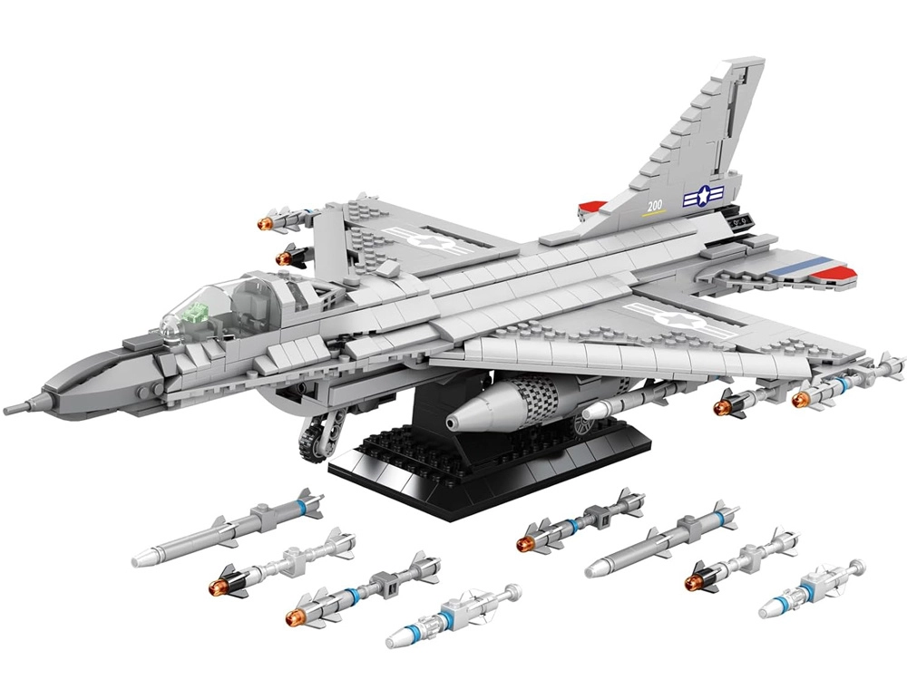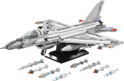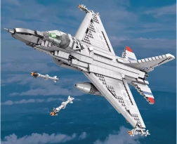 Bouw de iconische straaljager F-16 Fighting Falcon van 1337 stukjes en zet hem tentoon op een elegante standaard. Het gedetailleerde model van hoogwaardig ABS-kunststof biedt bewegende elementen, waaronder een openbaar landingsgestel, en de mogelijkheid tot wisselbare bewapening voor spectaculaire configuraties. Perfect als verzamelobject én voor creatief spel.