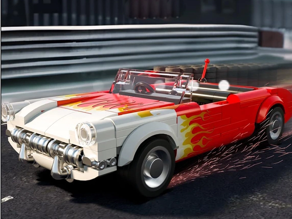 Dankzij realistische elementen zoals vlamstickers, dichte velgen, een kenmerkende voorbumper en decoratief “chroom” krijg je een model met een uitgesproken karakter. Inclusief geïllustreerde handleiding en steentjes-scheider voor comfortabel bouwen.