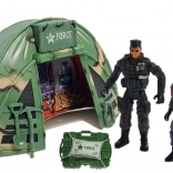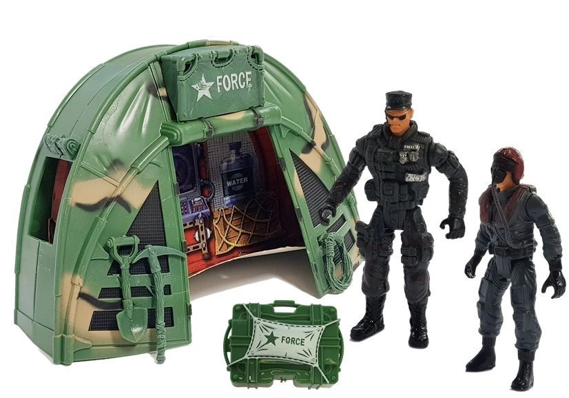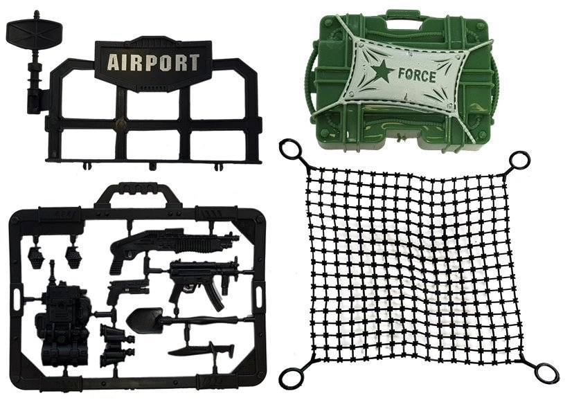 - Complete uitrusting: 3 soldatenfiguren, boot, SWAT-helikopter, landingsplatform, tent/commandocentrum, wapenset en groot net.
