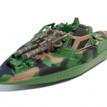 Duurzame kunststof boot in camouflage met dubbele voorste kanonnen en een gedetailleerde cockpit breidt actiescenario’s uit met wateroperaties.