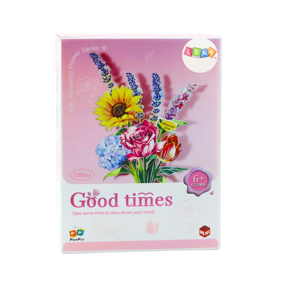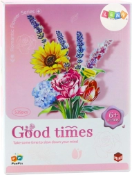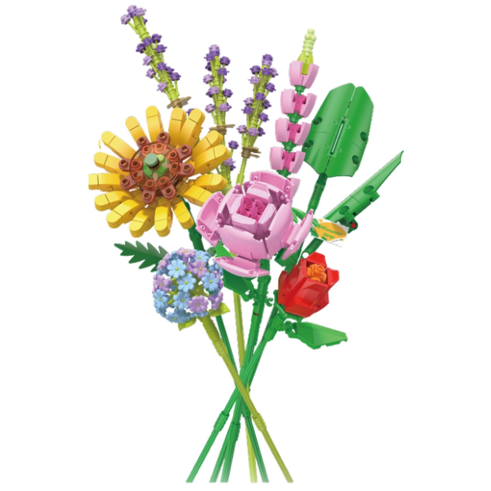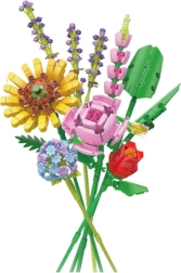 Maak je eigen elegante bloemendecoratie van een bouwset met 539 stukjes. De kleurrijke compositie met een zonnebloem, rozen, lavendel en een pioenroos biedt levensechte details, creatief plezier en stijlvolle interieurdecoratie. Het afgewerkte boeket is ongeveer 26,5 cm hoog en siert perfect elke plank of bureautafel.
