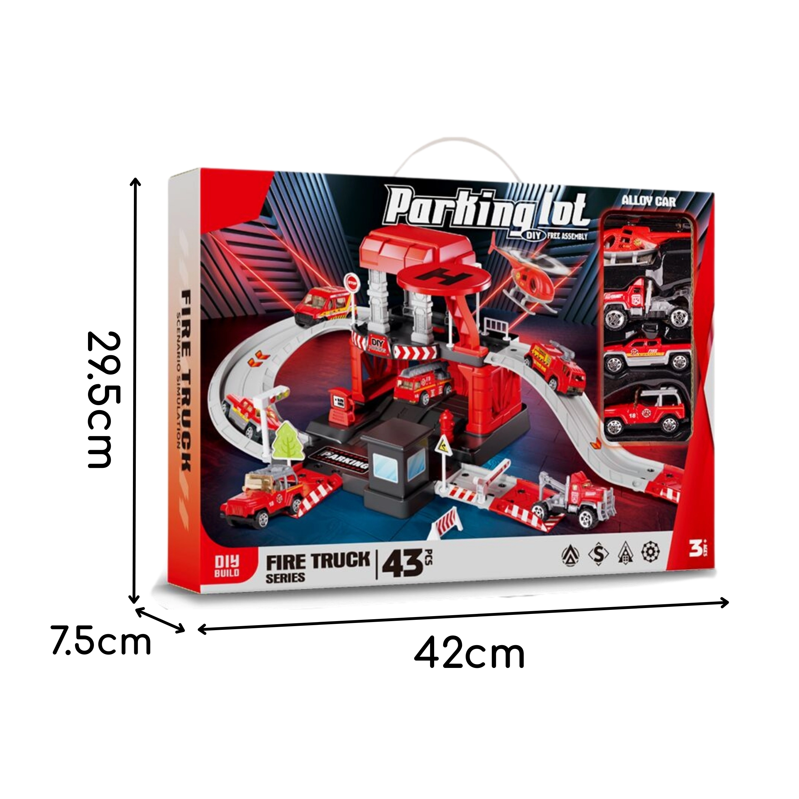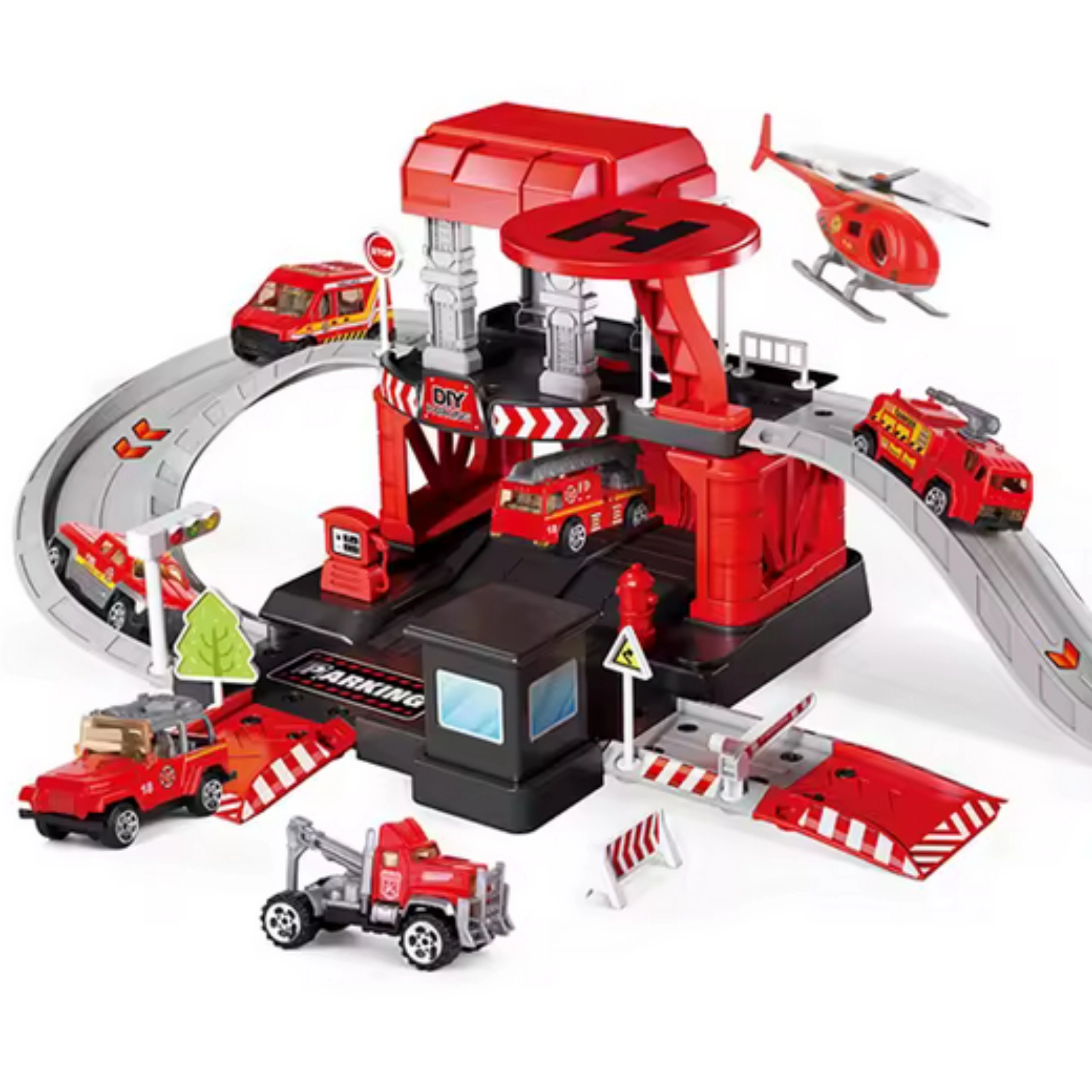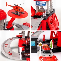 Ontdek een wereld vol actie met de Woopie-set, die realistische details combineert met een duurzame constructie die veilig is voor kinderen vanaf 3 jaar. De tweelaagse parkeerplaats met afritten, lift en landingsplaats voor de helikopter biedt eindeloze speelmogelijkheden – van brandbestrijding tot het regelen van het verkeer.
