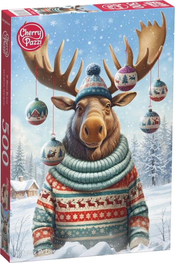 Geniet van ontspanning met de kwaliteitsvolle Cherry Pazzi puzzel met het motief Moose Be Love. De legpuzzel met 500 stukjes biedt een prettige uitdaging en vormt na het leggen een afbeelding van 34,5 × 50 cm – ideaal om in te lijsten of als cadeau.
