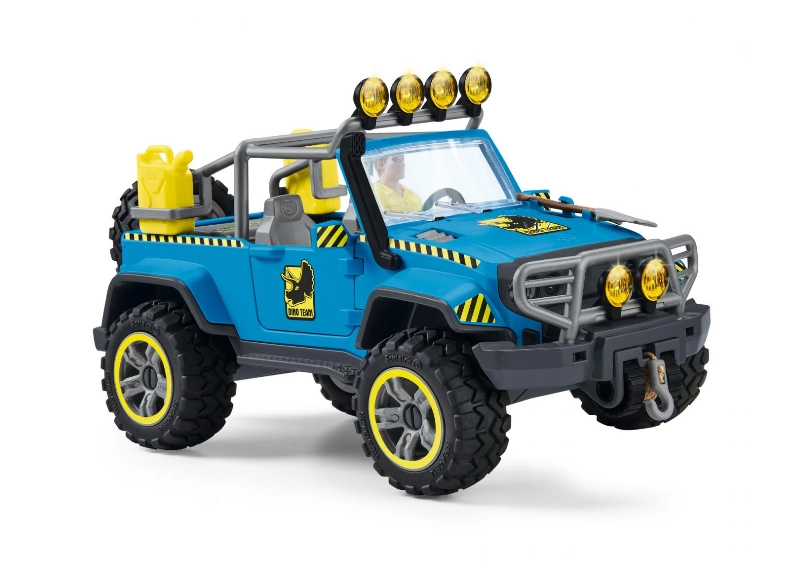 Ontdek de gedetailleerde set uit de serie SCHLEICH DINOSAURS, die talloze speelmogelijkheden biedt. Luis gaat met de terreinwagen en een werkende lier op pad, gebruikt een vleesaas en lokt de Giganotosaurus het verblijf van heksegmenten in. Zit de wagen vast, dan kan hij met de gereedschapsset eenvoudig een wiel vervangen of zichzelf weer de weg op trekken.