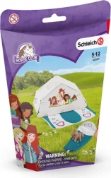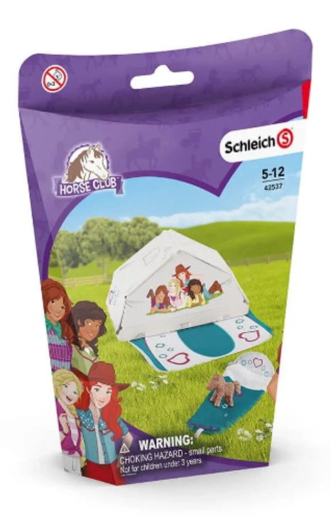 Ga de natuur in met de set kampeeraccessoires van SCHLEICH Horse Club. In een handomdraai zet je een ruime tent op, rol je je slaapzak met deken uit en zorgt een schattig pluchen paardje voor extra speelplezier. De ideale aanvulling voor creatief spel en om de wereld van de stallen en ruiteravonturen uit te breiden.