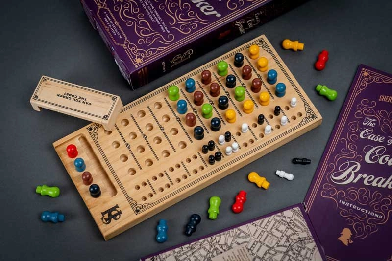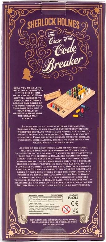 Ontdek een spannende logische uitdaging met het houten spel geïnspireerd op de wereld van SHERLOCK HOLMES. Het doel is om het verborgen patroon van vier gekleurde pinnetjes te raden aan de hand van aanwijzingen en je tegenstander te verslaan. Het spel stimuleert logisch denken, strategie en concentratie, is gemaakt van hoogwaardig hout en biedt tientallen variaties voor herhaald speelplezier.