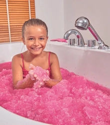 Strooi het poeder in het bad en binnen enkele ogenblikken krijg je roze, glinsterende gel waar kinderen dol op zijn. Een zintuiglijke speelervaring die creativiteit en fijne motoriek stimuleert.