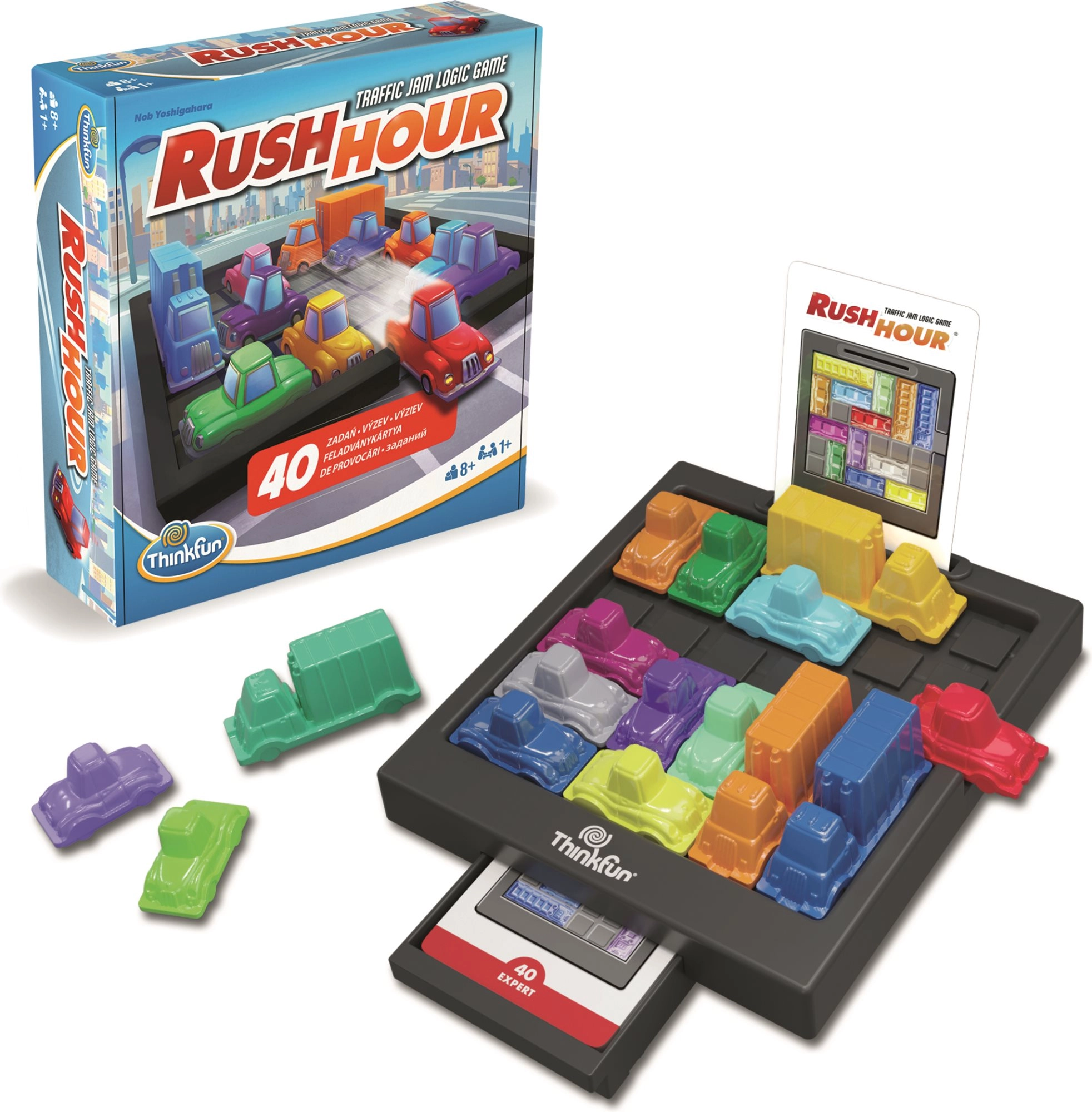 Het legendarische logische spel ThinkFun Rush Hour test je planningsvaardigheden en je geduld. Jouw doel is om de file op te lossen en de rode auto naar de uitgang te leiden door de andere voertuigen te verplaatsen. Een geweldige hersentraining voor kinderen en volwassenen, ideaal voor onderweg en thuis.
