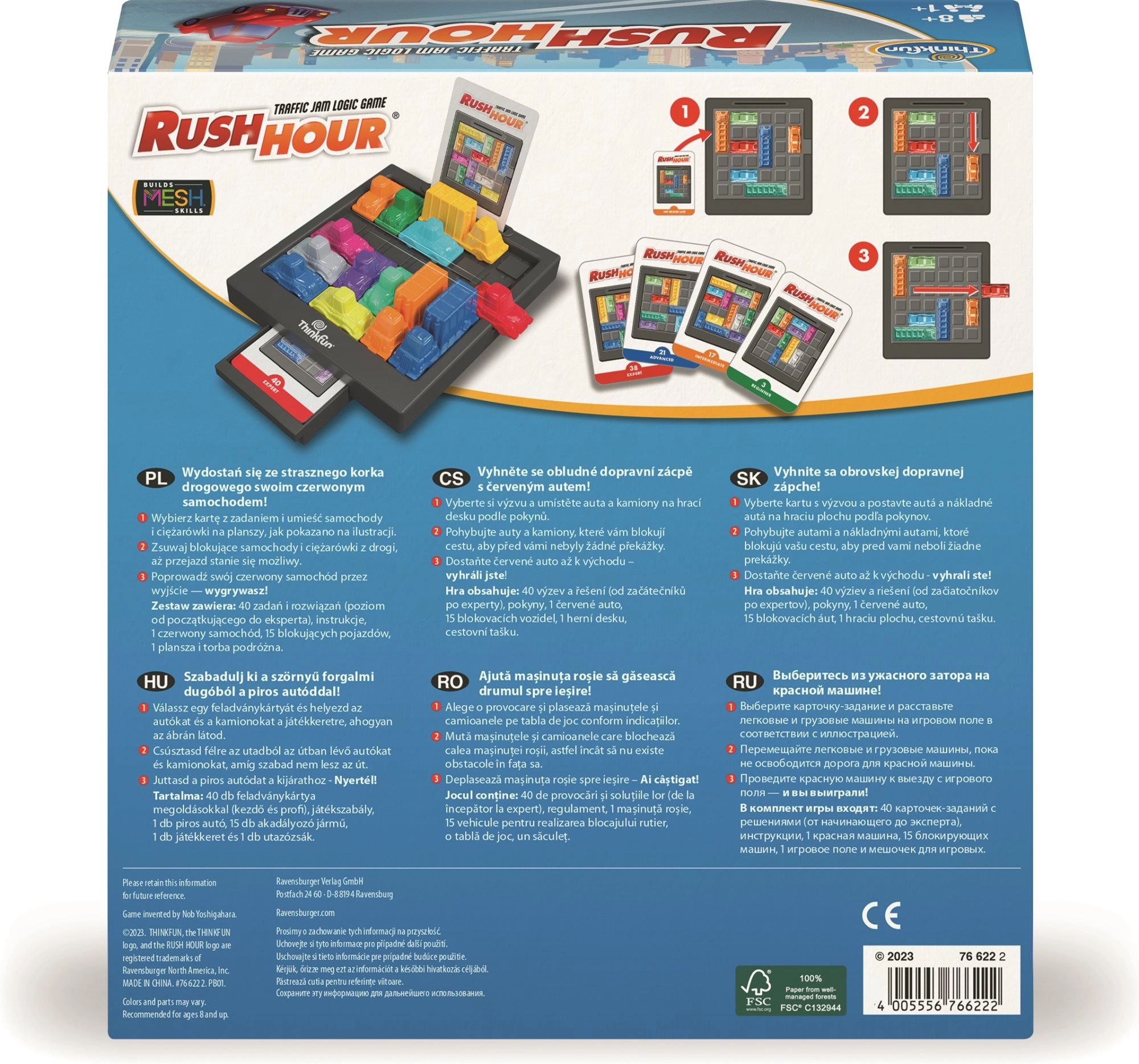 Rush Hour is een perfect cadeau voor puzzelliefhebbers. Dankzij de geleidelijk oplopende moeilijkheidsgraad genieten zowel beginners als gevorderden van het spel. Het compacte ontwerp maakt het een geweldig reisspel.