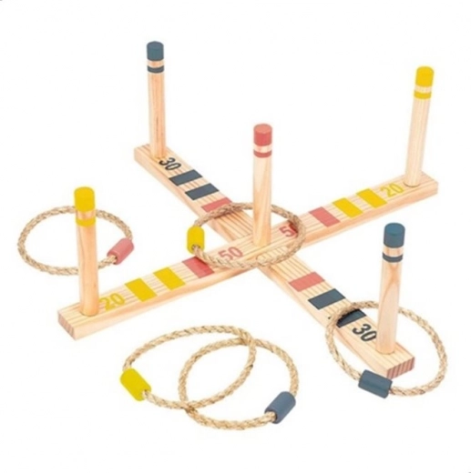 Een geliefd werpringenspel waarbij een goed oog, een vaste hand en een beetje geluk het verschil maken. De werpringen Ring Toss van PROFESSOR PUZZLE hebben eenvoudige regels en zorgen voor veel plezier voor het hele gezin. Het stabiele houten kruis met vijf pinnen is in een oogwenk klaar en je kunt meteen punten gaan scoren.