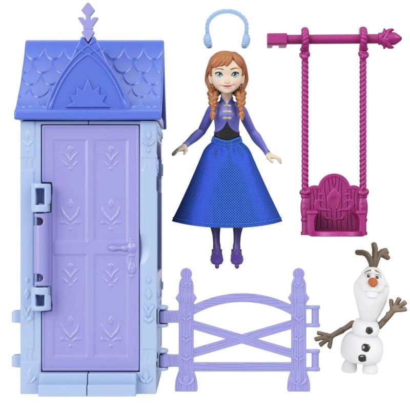 Kies uit verschillende varianten met unieke accessoires en functies, zoals deuren die open kunnen, opvouwbare huisjes, een glijbaan of een schommel. Elke verpakking bevat een minipop ANNA of ELSA, een dierenvriend (bijv. SVEN of OLAF) en thematische accessoires voor interactief spel.