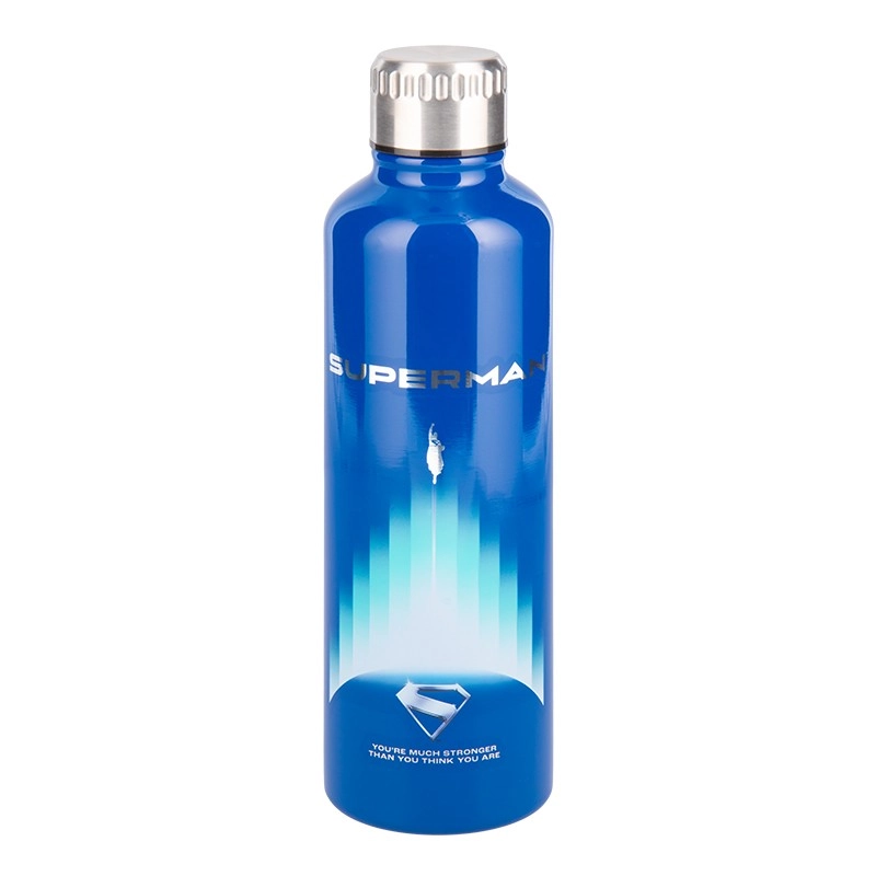 Stijlvolle roestvrijstalen fles met het SUPERMAN-motief met een inhoud van 500 ml, ideaal voor onderweg, school en werk. De duurzame uitvoering van roestvrij staal houdt je drankje langer vers en dankzij het compacte formaat past hij gemakkelijk in je rugzak. Niet geschikt voor de vaatwasser.