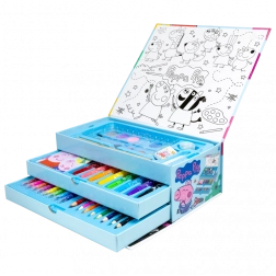 Ontdek de Peppa Pig creatieve box vol met knutsel- en tekenmaterialen voor kleine artiesten. De praktische driedelige box biedt alles wat kinderen nodig hebben om te creëren – van waterverf en palet tot viltstiften, kleurpotloden en pennen. Een geweldige keuze voor thuis knutselen, school en als cadeau.