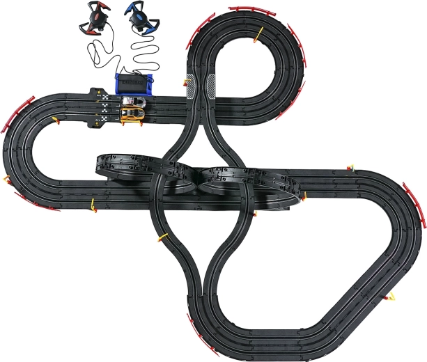 Modulaire onderdelen met veiligheidsafzettingen zorgen voor stabiliteit, zelfs in de snelste passages. De twee controllers kunnen op de basis worden aangesloten of op batterijen werken, zodat je vrij kunt racen volgens je eigen regels. Dankzij de lange baan is er ruimte voor inhalen, tactisch rijden en dramatische finishes.