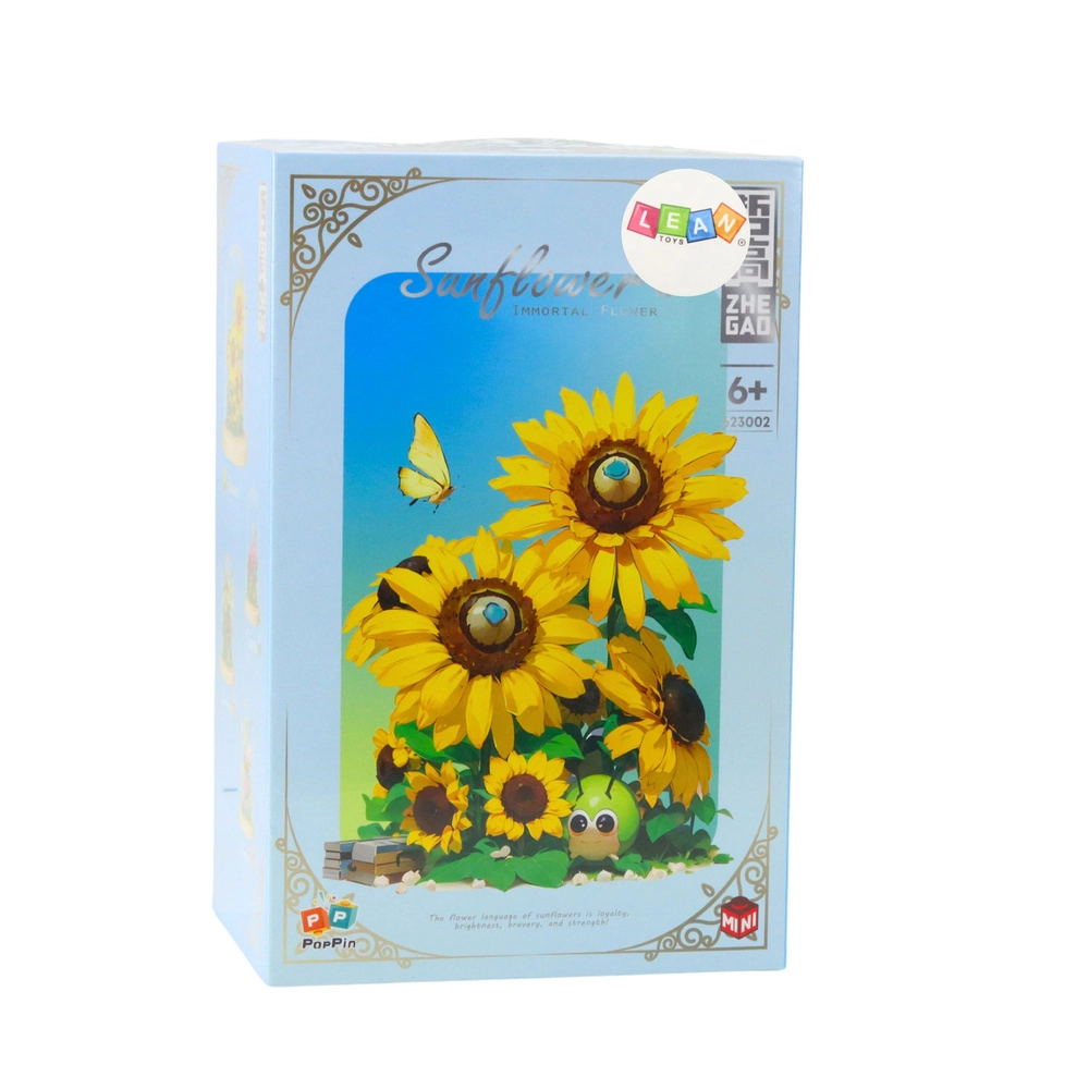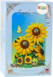 - zonnebloem-bouwset (633 stukjes), draad met LED, beeldinstructies, gekleurde kartonnen doos