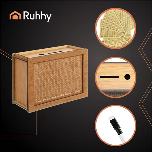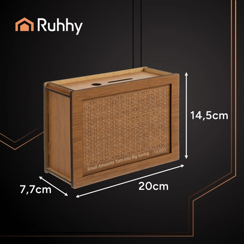 Zoek je een manier om een financiële gewoonte op te bouwen en met een glimlach te sparen? Deze kwalitatieve houten spaarpot RUHHY met verwisselbare kaarten en de bedrukking “10 000” verandert geld opzij zetten in een leuke uitdaging. Volg je vooruitgang, markeer behaalde bedragen en dankzij de gesloten constructie krijg je pas toegang tot je spaargeld wanneer je je doel hebt bereikt. Een geweldig cadeau en een praktische hulp voor financiële geletterdheid voor kinderen en volwassenen.
