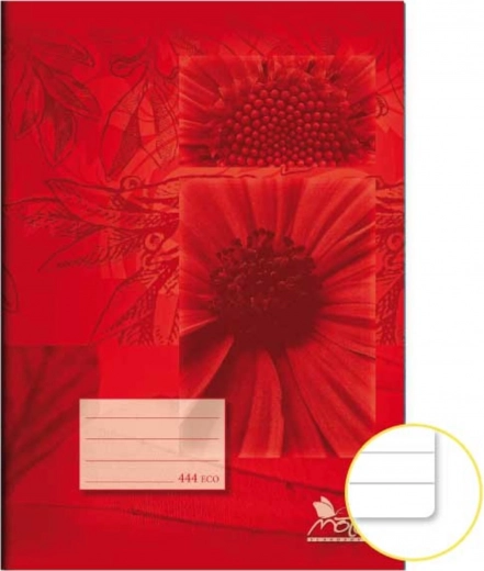 Stijlvol schools schrift met het motief Rode bloemen in het formaat A4, met gelijnde rulering 8 mm en marge. Bevat 40 vellen van hoogwaardig gerecycled papier – ideaal voor school, kantoor en notities thuis.